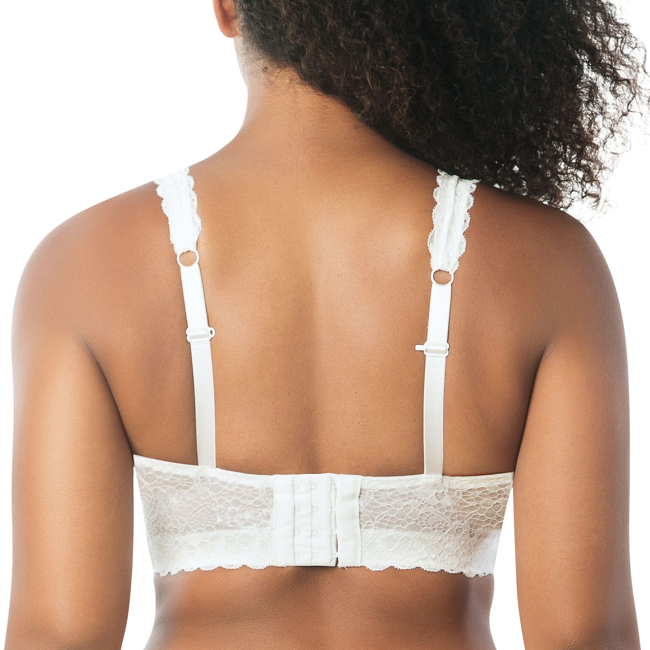 Pretty and lacy, this wire-free bralette is very supportive and super comfortable. The convertible J-hook feature allows for a racerback option. Specially designed for full busted and full figure women. Inclusive sizing and a wide variety of colors available.
