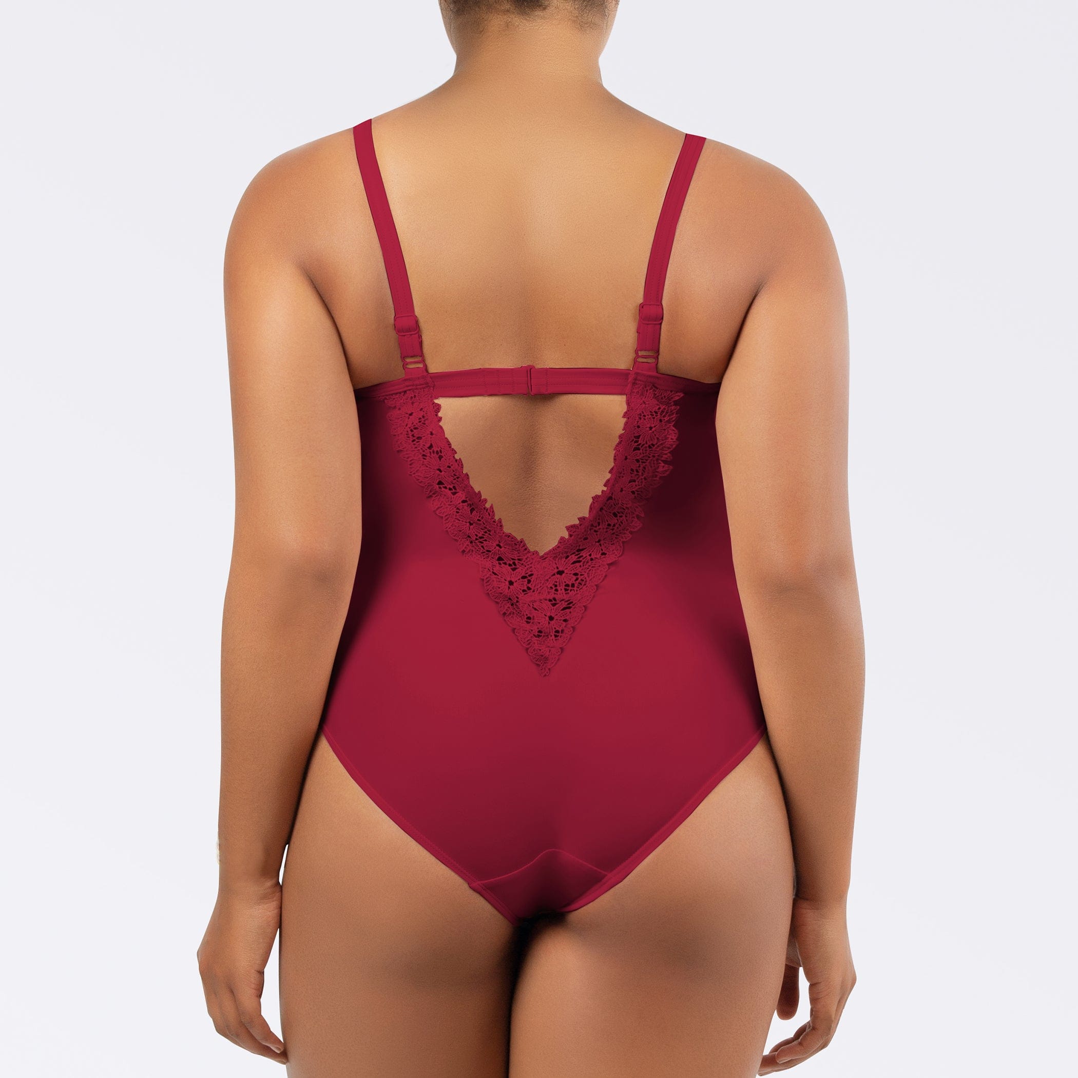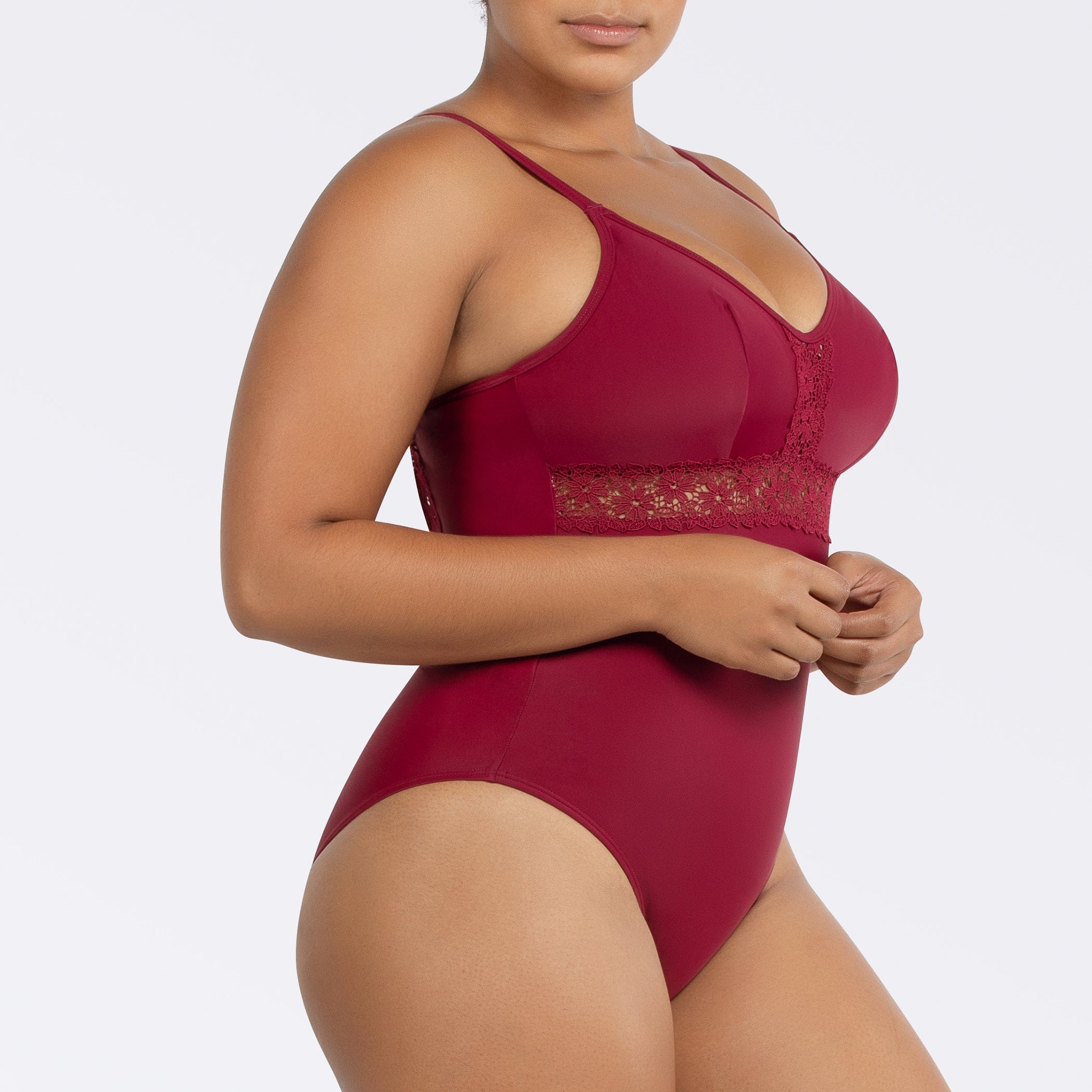 PARFAIT Brigitte S8206 V-Neck One Piece Swimsuit with Lace Detail, Shelf Bra, and Full Coverage Fit - Rumba Red
