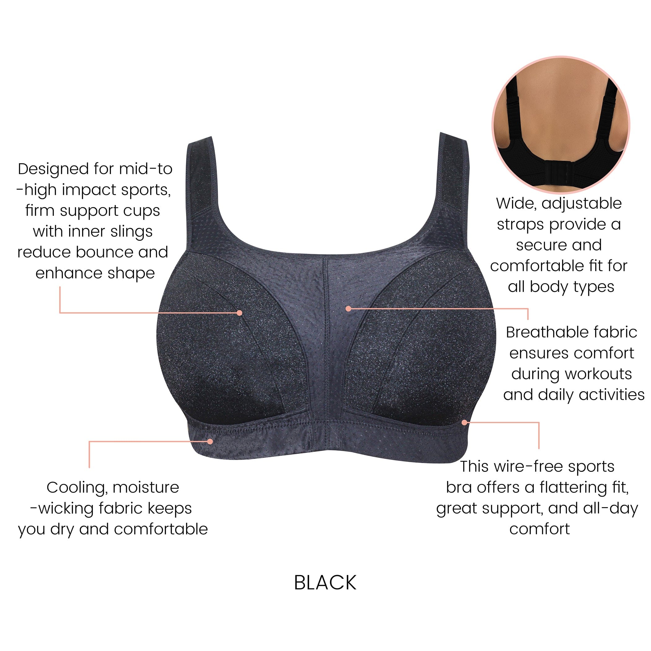 • Adjustable Ladder Straps: Wide, comfort-adjustable straps ensure a perfect, secure fit for every body type.