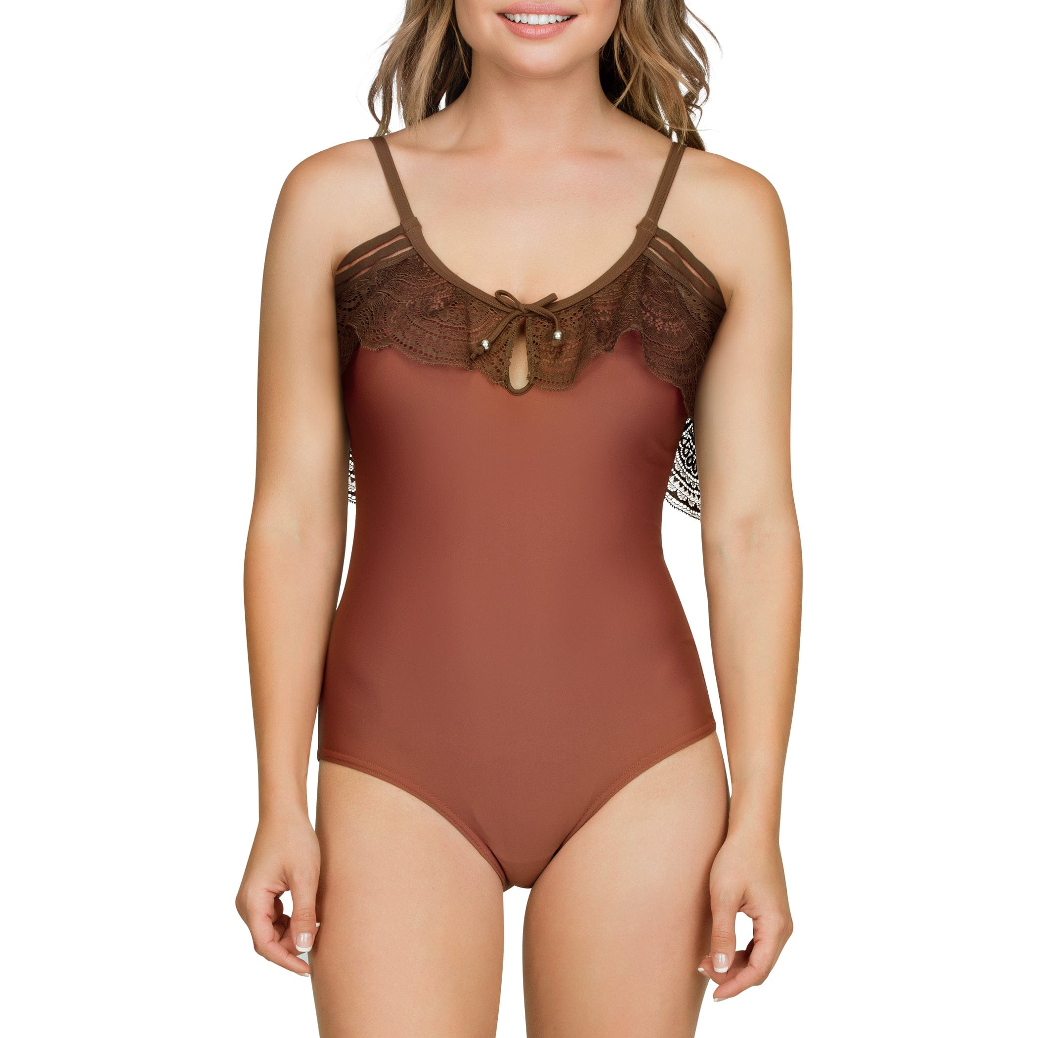 MOD by PARFAIT Pure S8126 Womens One Piece Swimsuit Ruffle Keyhole Design - Terracotta